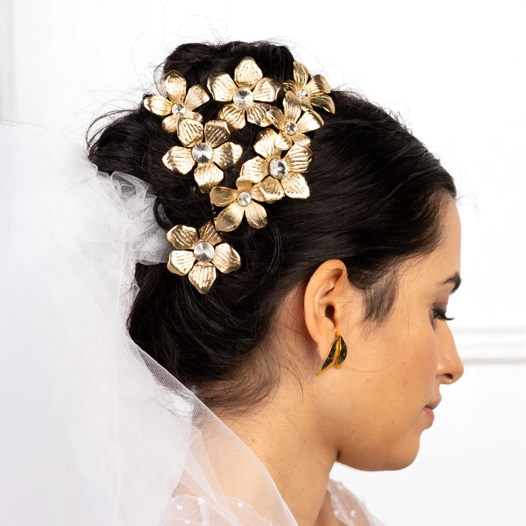 Set de 2 Pins Mini Hibiscus, hecho 100% de manera artesanal, en bronce y enchapado en Oro 24k.